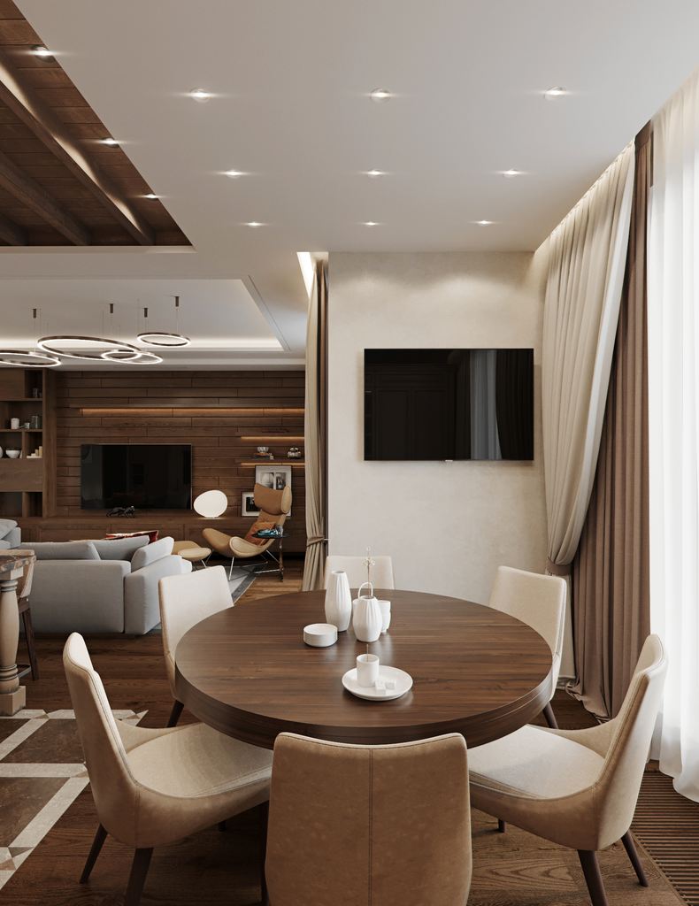 Уникальный интерьер квартиры, в котором органично слились сразу нескольких стилей - кантри, шале, лофт, современный и классический. Чтобы интерьер смотрелся целостным, была выбрана нейтральная цветовая гамма, которая прослеживается во всех помещениях.