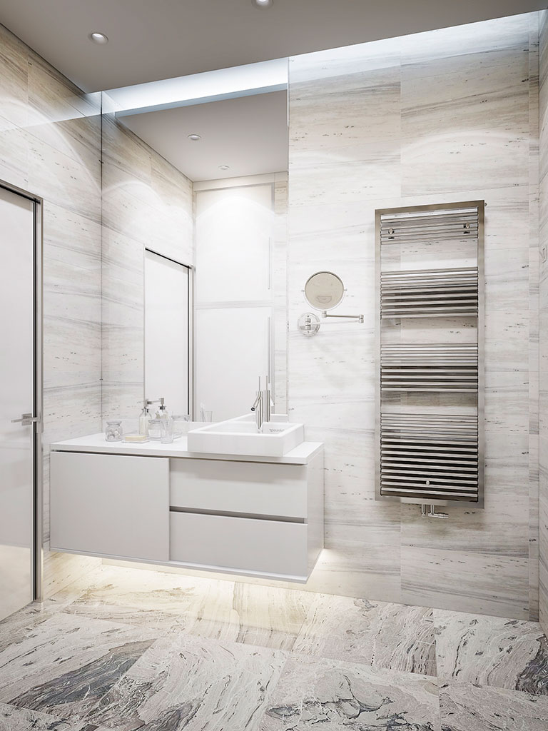 Символом чистоты становится сияющая белизна второго санузла. Ремонт квартиры под ключ позволил подойти к его отделке как и к другим — с максимальной скрупулезностью и филигранностью.