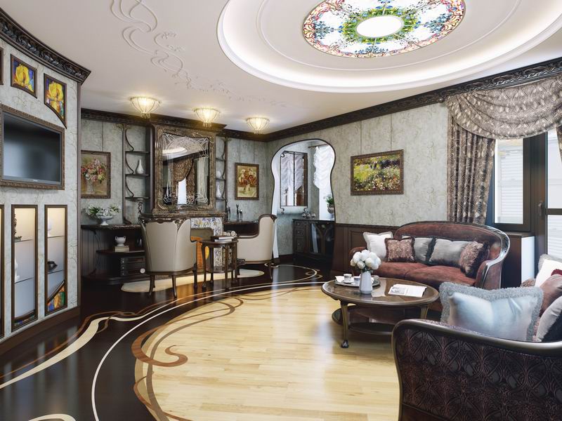 Историческому месту приличествует исторический стиль: интерьер дома в Пушкине выполнен в основном в стиле модерн, который стал визитной карточкой серебряного века русской культуры. Интерьер в стиле модерн - один из самых поэтичных и одухотворенных. Еще недавно считалось, что искусство модерна уже далеко в прошлом. Сверкнув на рубеже веков, блистательный ар-нуво, казалось, навсегда сметен бурной эпохой войн и социальных потрясений. Однако его художественные идеи были столь плодотворны, что и спустя более 100 лет они оказались востребованы, тем более что новые технологии и материалы позволяют эффективно воплотить их в жизнь. Но дизайнеры не ограничились одним стилем. Добавив немного античности, немного ар-деко, немного современности, они сделали жизнь в доме подобной путешествию во времени.